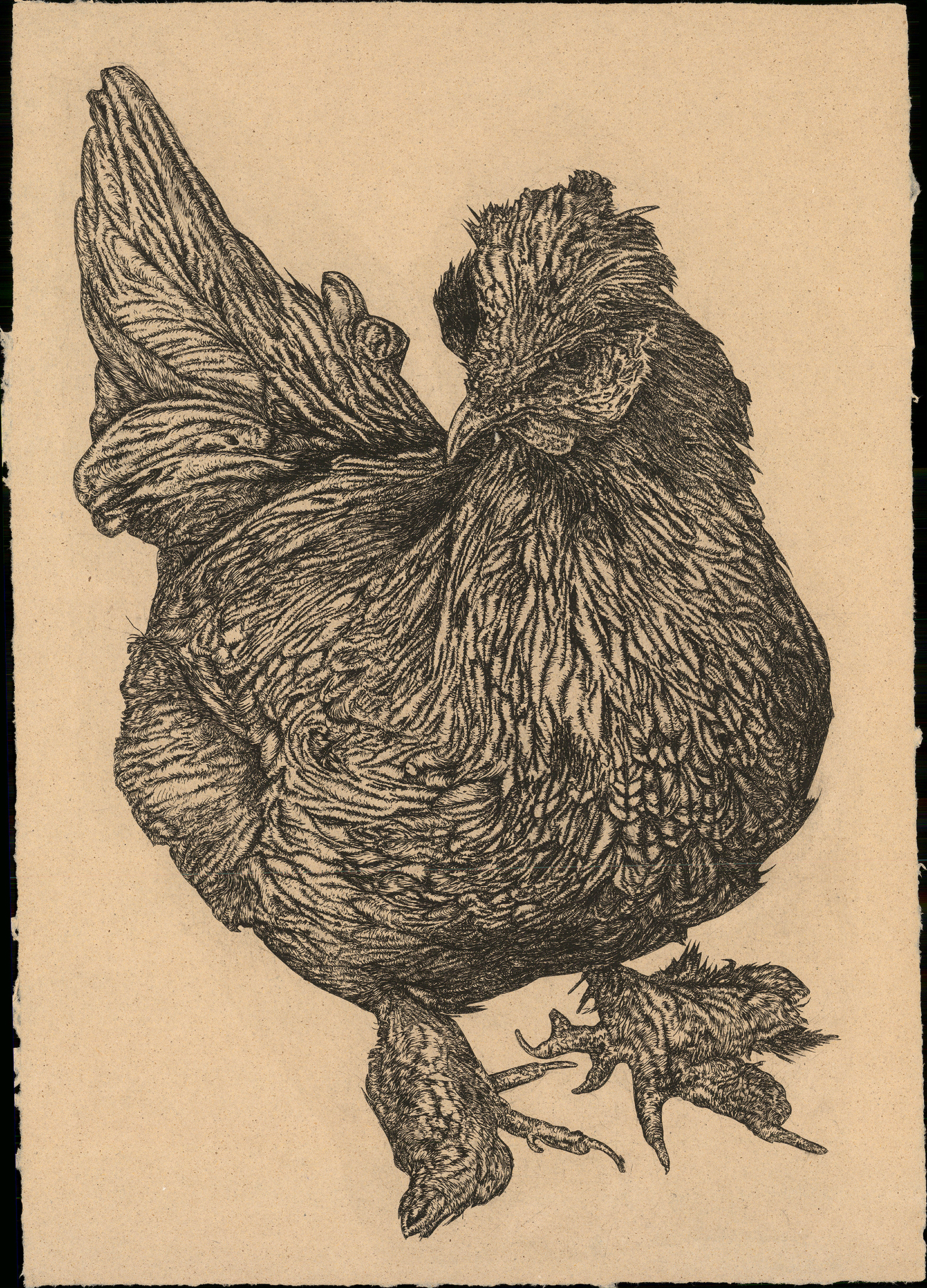 Rachel Singel, “Chicken”, 2023; intaglio on handmade paper; courtesy of the artist.