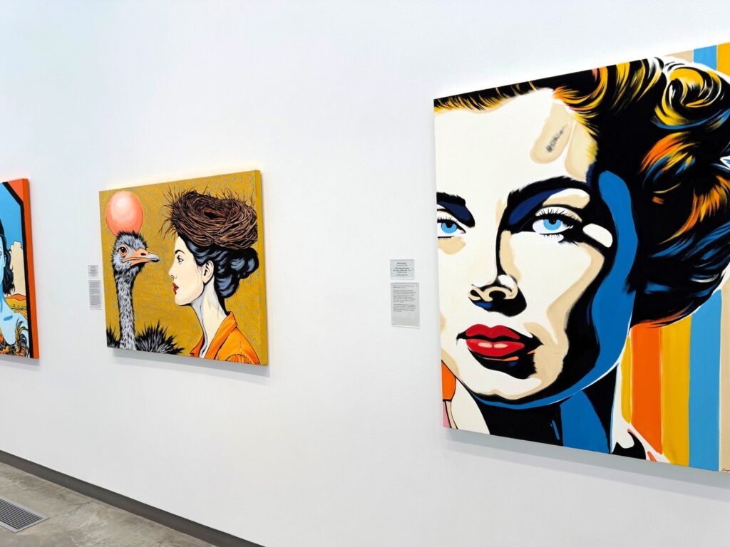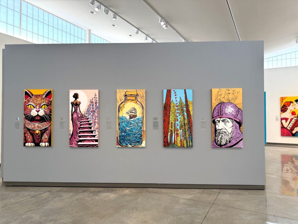 “My art is driven by narrative. Before a single brushstroke touches canvas, a story begins to unfold in my mind. As a self-taught, figurative artist, I blend the color and energy of pop art with the dreamlike qualities of surrealism. Each painting is an invitation to explore, to bring out each person’s internal storyteller through vibrant hues and unexpected juxtapositions. Accompanying each piece is a written narrative, a glimpse into the world I envisioned as I created the work. However, I encourage viewers to embrace their own interpretations and to allow their imaginations to travel wherever the art may lead them. My goal is to transport the audience to an alternate world, spark conversation and contemplation, and inspire us to embrace the unexpected.” -Bryce Holt