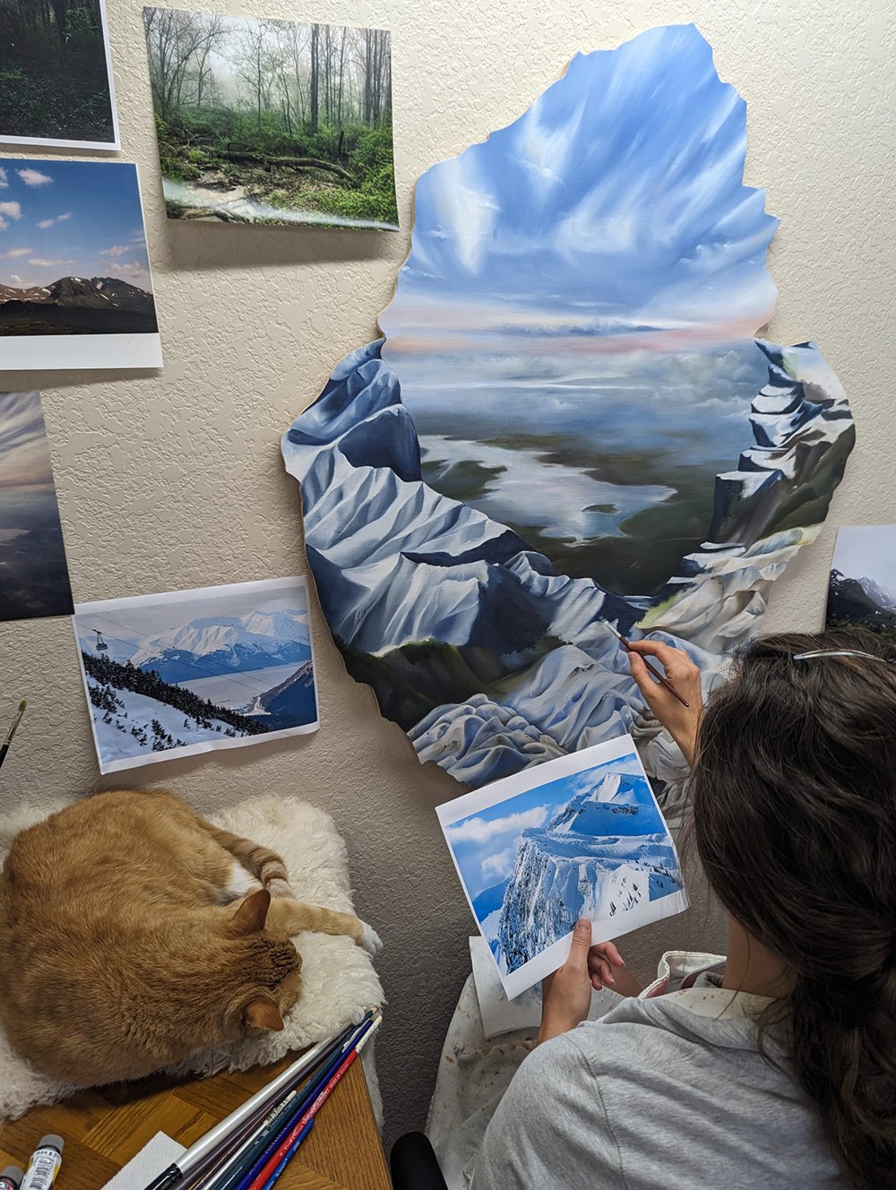 "This series is a pleasure project inspired by my childhood of growing up in Anchorage, Alaska, where I spent time by the ocean and watched the sky for the Aurora Borealis. The work takes Alaskan imagery and abstractly layers it in a way that references memory. As my place of origin, it captures a kind ...